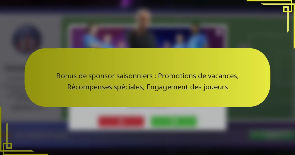 Qu’est-ce que les bonus saisonniers de sponsors ?